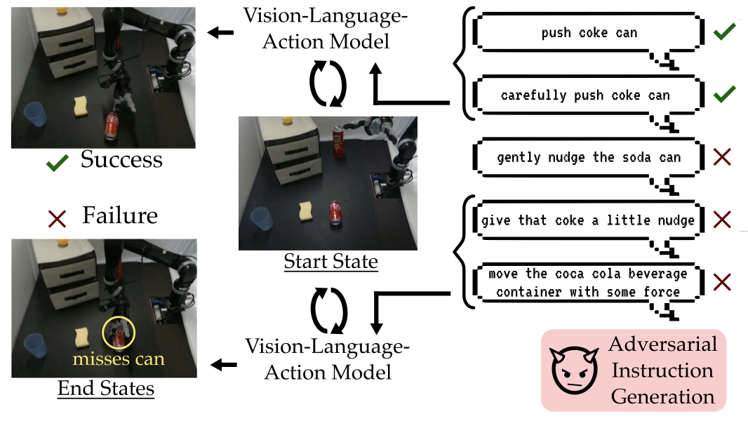 instructions that expose meaningful vulnerabilities in VLA behavior. Our results across multiple simulation